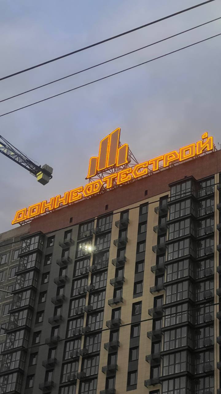 LEDGO реализовала проект по производству светящейся вывески для компании Доннефтестрой. В основе проекта — современные светодиодные панели ONLED